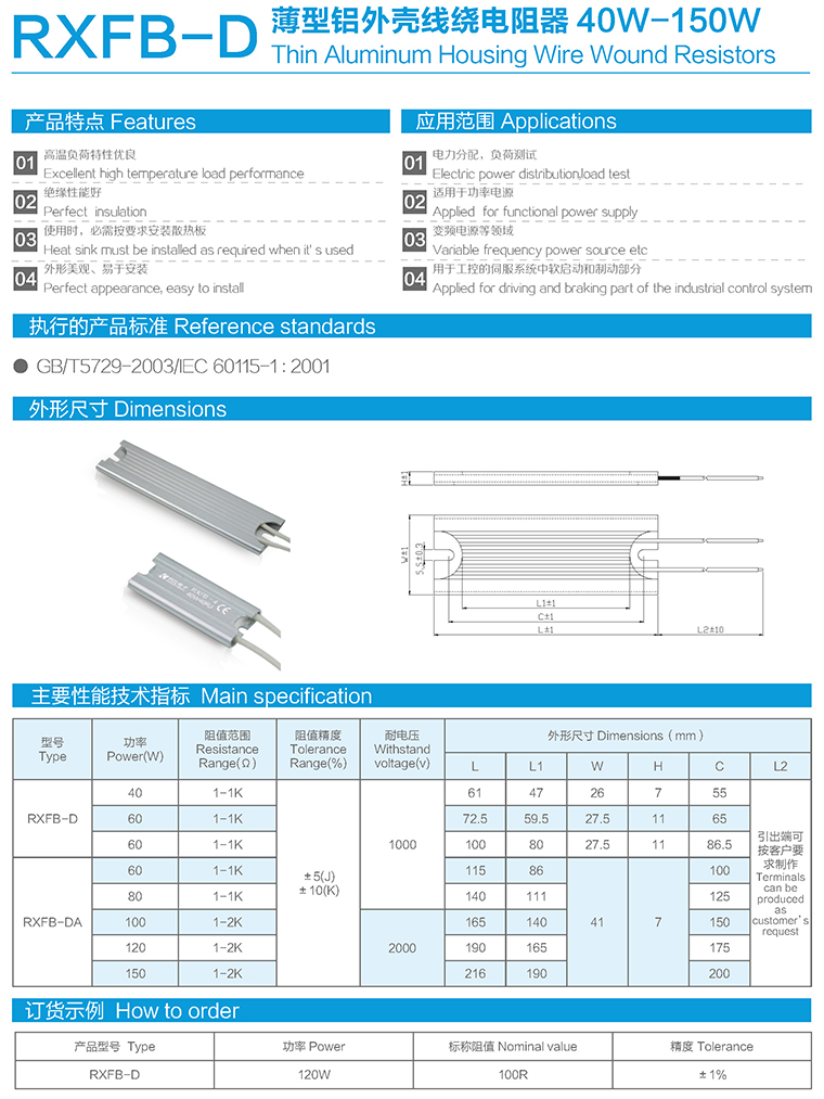 RXFB-D薄型铝外壳线绕电阻器