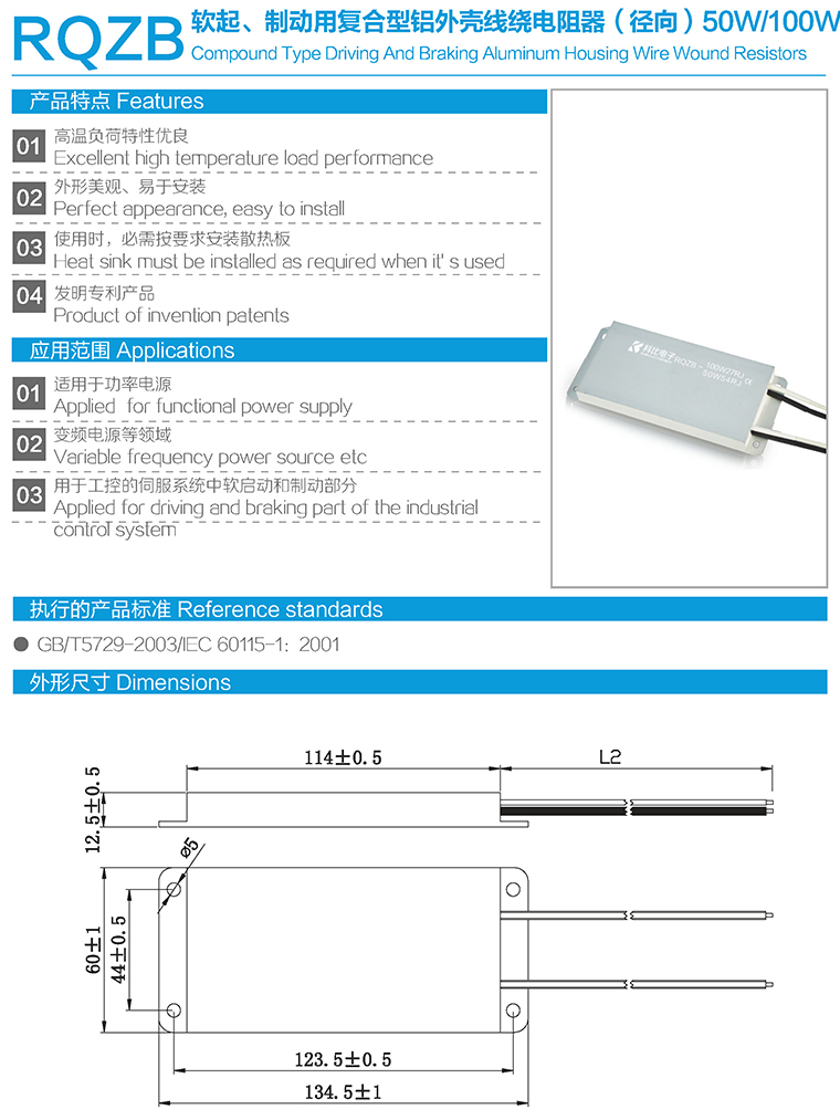 RQZB软起、制动用复合型铝外壳线绕电阻器(径向)
