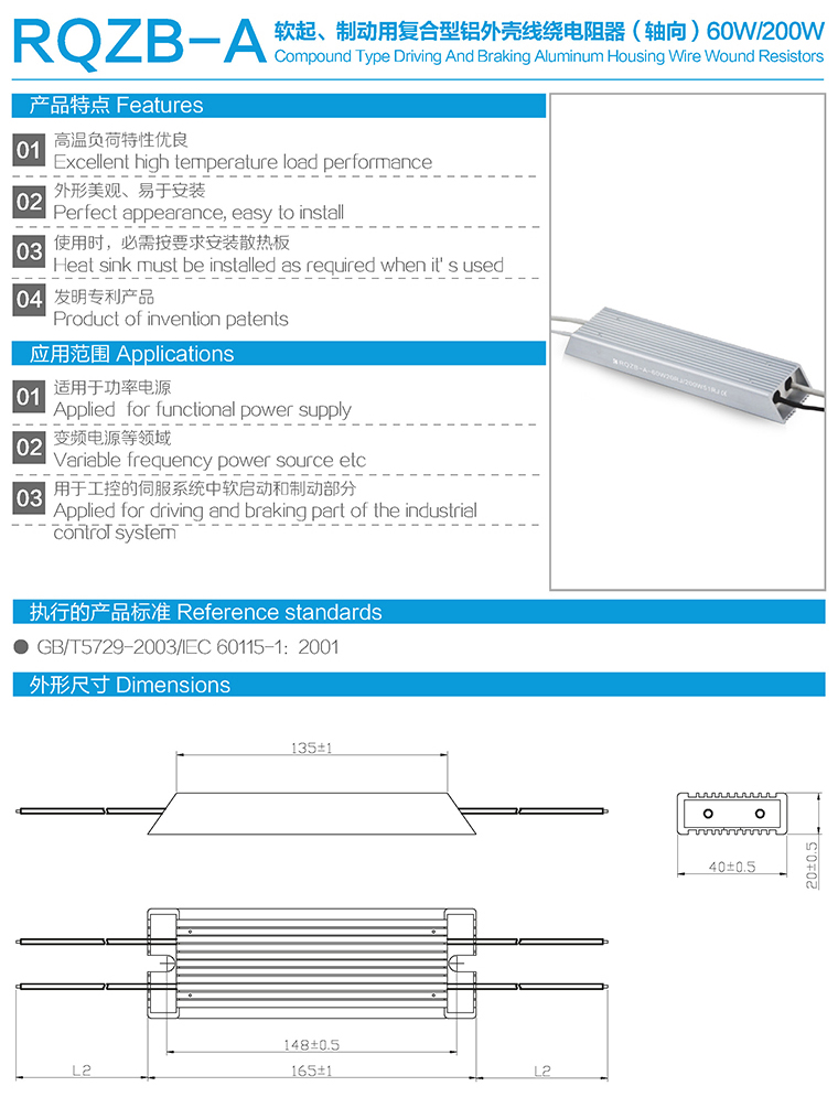 RQZB-A软起、制动用复合型铝外壳线绕电阻器(轴向)