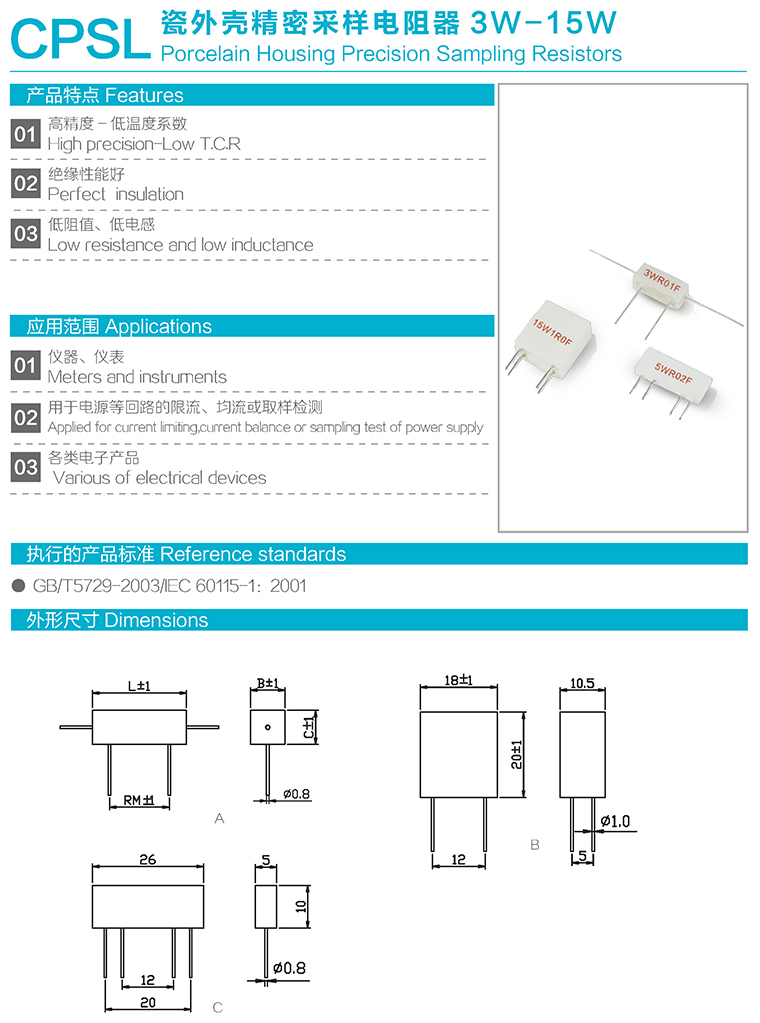 CPSL型瓷外壳精密采样电阻器